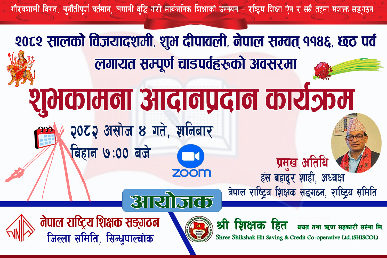 २०८२ सालको विजया दशमी, शुभ दिपावली, नेपाल सम्वत तथा छठ पर्वकाे पावन अवसरमा शुभकामना आदान प्रदान कार्यक्रम। २०८२ सालको विजया दशमी, शुभ दिपावली, नेपाल सम्वत तथा छठ पर्वकाे पावन अवसरमा शुभकामना आदान प्रदान कार्यक्रम।। २०८२ सालको विजया दशमी, शुभ दिपावली,